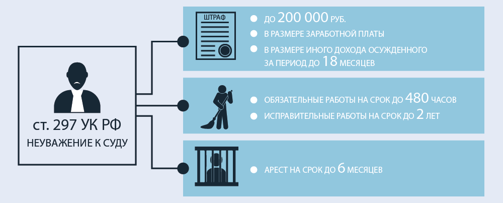На текущий момент у суда есть возможность оштрафовать за неуважение к суду, а в уголовном кодексе даже предусмотрена ответственность за это - ст. 297 УК.