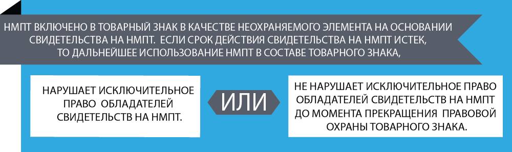 Единственное исключение – это предоставление возможности правообладателю НМПТ включить его в качестве неохраняемого элемента в свой товарный знак. Благодаря этому исключению владелец НМПТ вправе индивидуализировать свои товары среди товаров других правообладателей НМПТ. Кроме этого, такое включение в товарный знак обеспечивает дополнительную защиту товара от контрафакта.