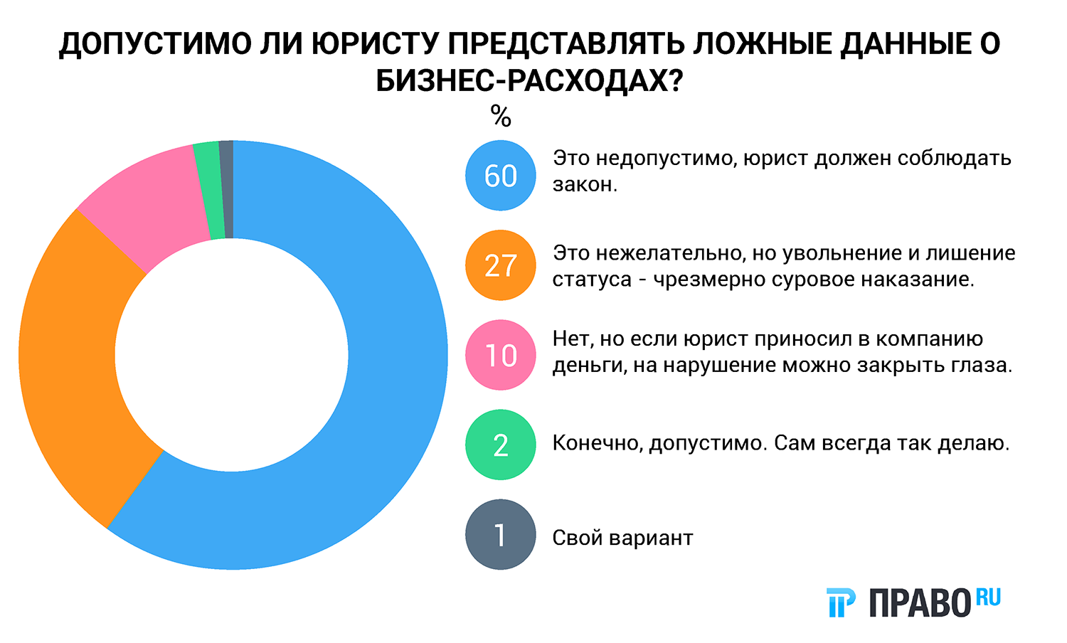 Читатели ответили на вопрос "Допустимо ли юристу представлять ложные данные о бизнес-расходах?". Судя по результатам, большинство из них неодобрительно относится к ситуации, когда юрист, в том числе партнер, нечестен со своим работодателем.