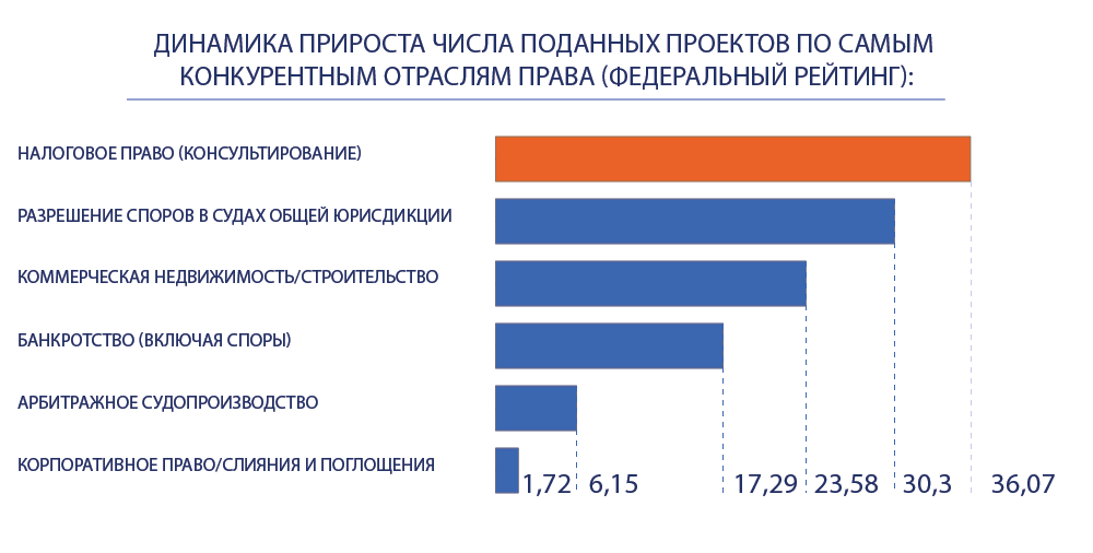 Компании, имеющие уклон в определенную специализацию, стараются развивать смежные практики, чтобы иметь возможность браться за более сложные, комплексные проекты: так, юристы признают, что сегодня едва ли не каждый второй проект имеет банкротную составляющую, и всё меньше споров обходятся без специалистов по уголовному праву.