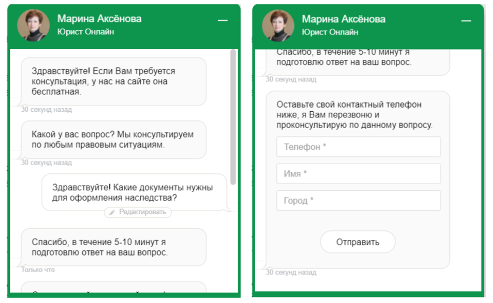 Юридические чат-боты работают 24/7. Это значит, что клиенту из Владивостока не придется ждать, пока откроется ваш офис в Москве. Получить ответ на стандартный вопрос он сможет онлайн за несколько минут и всего в пару кликов.