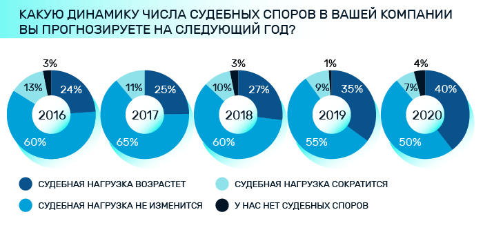 Это отразится на внутренних юристах. 70% опрошенных отметили, что уже работают больше, чем раньше. При этом только каждая шестая компания имеет возможность увеличить число юристов во внутреннем департаменте.