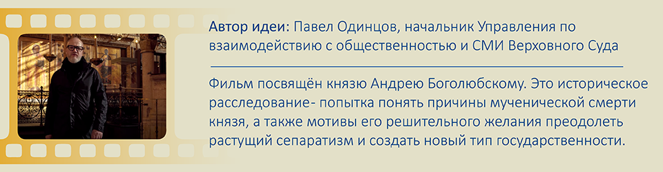 «Наш фильм – это еще и попытка реанимировать русскую историю», – говорит Одинцов. Вторая его работа называется «Жертва», она посвящена князю Андрею Боголюбскому. Премьера тоже состоялась на телеканале «Культура».