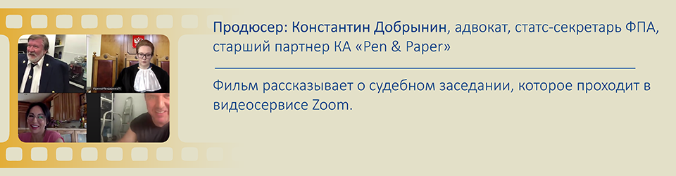 «Лучше сидеть перед камерой, чем в ней», «лучше страница ВК, чем страница УК», «лучше в Zoom, чем на зоне». Самые яркие шутки 20-минутного фильма о судебном процессе. По сюжету молодого человека обвиняют по несуществующей статье за участие в онлайн-митинге. Михаил Ефремов играет в картине его адвоката, и только в финале фильма выясняется, что он всего лишь безработный актер, муж судьи, которого супруга попросила посидеть и помолчать в процессе, изображая соблюдение права на защиту. Но смолчать он не мог. Высказаться захотели и авторы фильма. «Мы решили, что пора поговорить художественными средствами о правосудии и суде и думали, как это сделать, чтобы было кратко, точно и не банально. Решение пришло с началом пандемии», – поделился Константин Добрынин, адвокат, статс-секретарь ФПА, старший партнер КА Pen & Paper. Онлайн-формат судебных заседаний, который вынужденно стал популярен из-за пандемии, использовали и создатели картины. Именно Zoom, по словам Добрынина, нагляднее всего показывает то безумие, с которым юристы зачастую сталкиваются в российских судебных процессах.