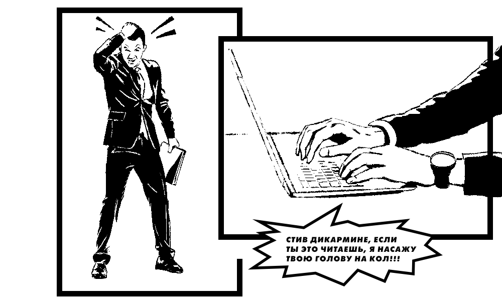 Дэвис был так этим встревожен, что попросил ДиКармине проверить все сообщения Дая на корпоративном сервере. Дай, видимо, это предвидел, потому что написал кое-что коллеге. Например, «Стив ДиКармине, если ты это читаешь, я насажу твою **аную голову на кол».