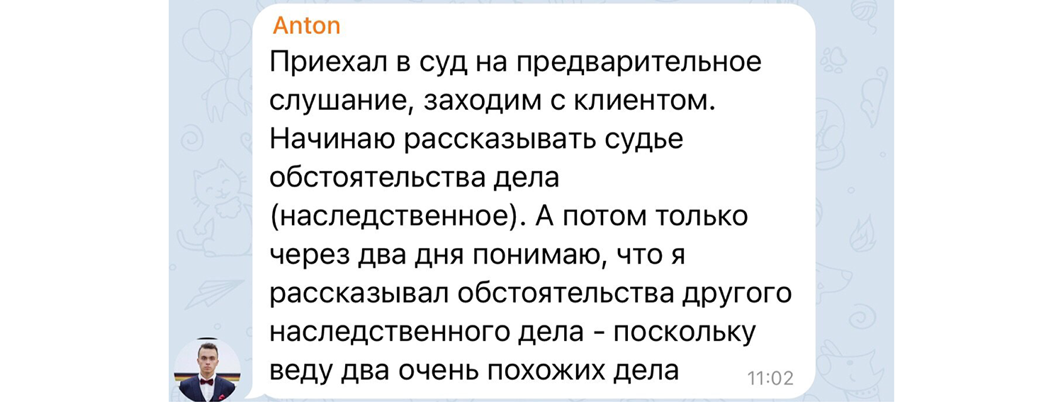 В рабочем аврале некоторые специалисты даже путают целые дела, особенно если их фабулы схожи.