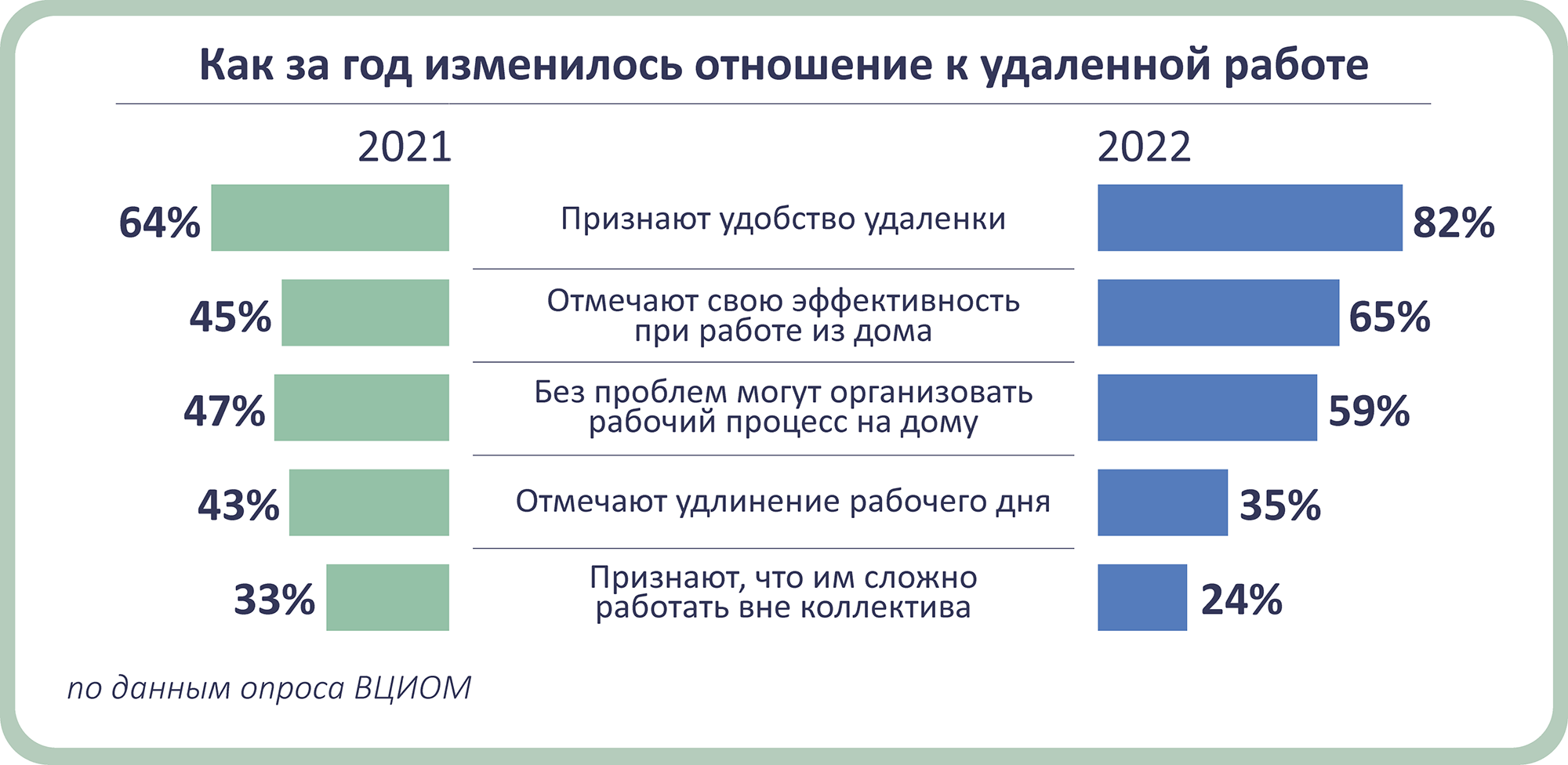 Сейчас из дома работают не только те, кто уехал из России. Взгляд на офисную работу у многих компаний изменился во время пандемии, тогда коллективы экстренно отправлялись чуть ли не в полном составе на удаленку. По данным ВЦИОМ, опыт дистанционки имеет каждый четвертый работающий россиянин.
